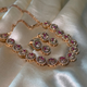 Achieve effortless sparkle with the Floating Polki Dangler Necklace Set. This beautiful set features a graceful, adjustable chain adorned with linked stations of brilliant Polki-style (uncut-look) stones. Each large Polki stone is set in an elegant gold-toned frame and surrounded by a shimmering halo of micro-pave accents, creating a floating...