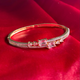 A stunning silver-tone bangle featuring a graceful criss-cross design, adorned with oval-shaped aqua blue stones and shimmering white stones. The lattice-style pattern adds elegance, making it a perfect piece for formal occasions or festive wear