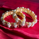 These stunning bangles are crafted in a classic South Indian temple jewellery style, popularly known as Kemp Bangles. The bangles are embellished with intricate gold-tone carvings, white and red enamel work, and tiny hanging pearl-like beads (ghungroos or jhumkis), which add a charming movement and ethnic elegance.